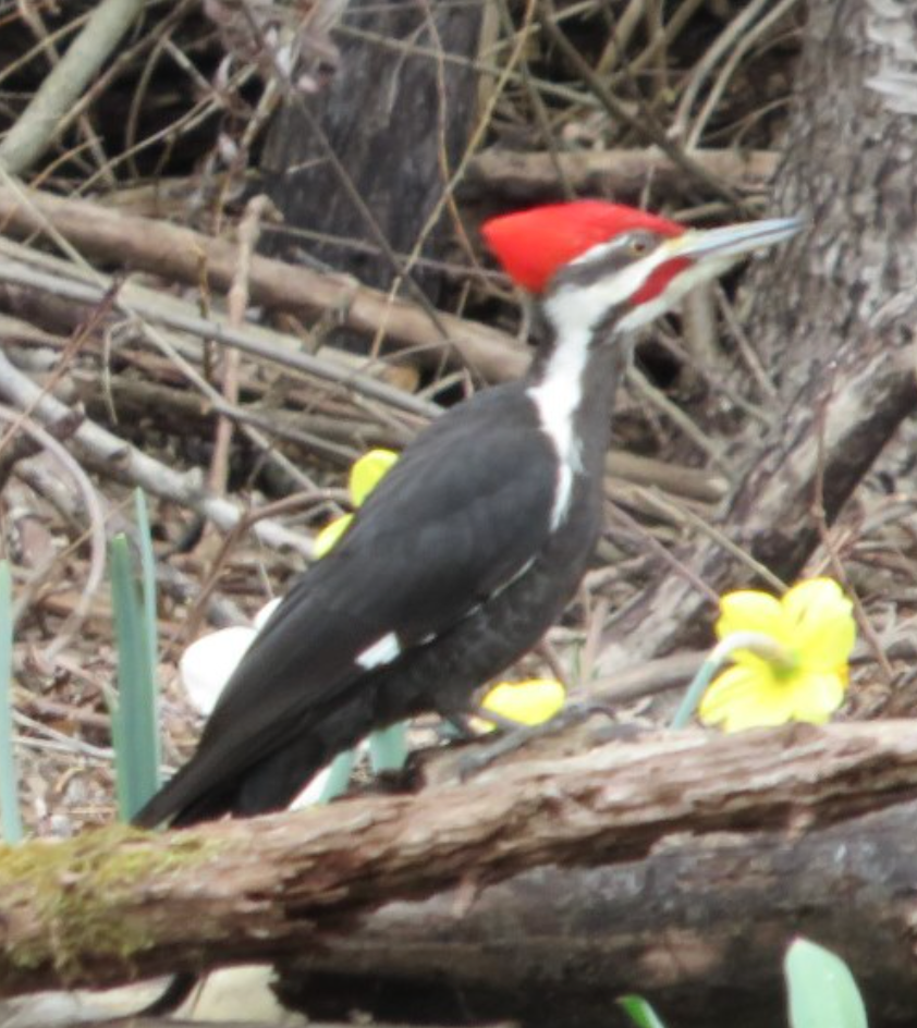 Pileated Woodpeckers that look prehistoric with their talons leaping up trees and literally excavating wood. They have an interesting flight pattern that swoops and dips. – David Ravenscroft