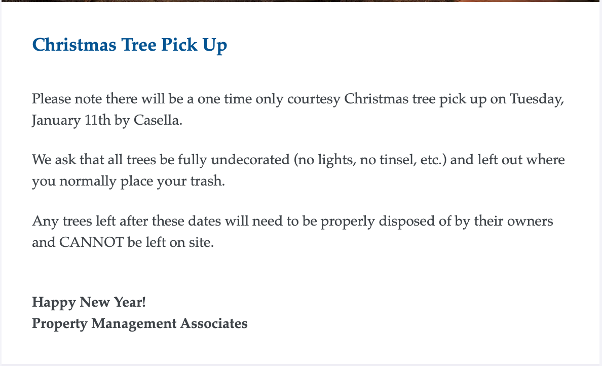 A computer was left in the trash room next to unit 188. Computers cannot be thrown in the trash, and must be disposed of properly. This costs your neighbors money. Casella’s will not pick these items up in the normal trash pick up and charges the association extra. This contributes to depleting funds from the allotted budget as well as the HOA dues. Thank you for your cooperation.